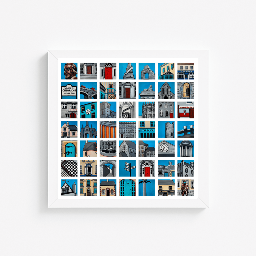 This 49-panel print of Snapshots of Celbridge features all the panels of the original painting, also available in 4-panel prints and as individual prints.