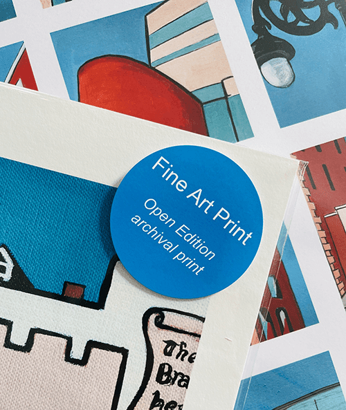 I paint using clean lines and strong colours. These bold blocks of colour suit the subject of largely urban environments, taking ‘snapshots’ of views which are the familiar evocative pieces that make up the jigsaw of the world we inhabit.